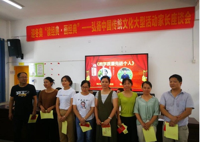 为了激励广大教师献身教育事业,提高教师的职业道德素养和专业发展水平,进一步提升办学水平,副校长毛小波宣布表彰决定,授予马钰萍等19位同志“教育教学质量先进个人”荣誉称号,授予王凤梅等7位同志“师德标兵”荣誉称号,校长、书记为获奖的同志颁发了奖状和奖金。获奖教师代表发表了热情洋溢而又饱含深情的讲话。受表彰的先进集体、优秀教师代表分别上台发言,朴实无华的发言展现了全体教职员工不辞辛劳、潜心育人的身影,以实际行动践行着“传道、授业、解惑”这一庄重而伟大的历史使命,薪火相传、生生不息。