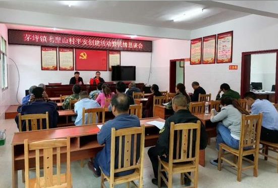 会议要求,全镇全体机关干部、各村(居)务必继续推进十大工作举措,即制定一个活动方案、召开一次动员部署会议、落实一次入户走访、发放一封致群众的公开信、召开一次民情恳谈会(院落会)、开展一次法制教育、进行一次平安宣讲、组织一次星级平安家庭创建评比活动、开展一次微心愿、小帮扶活动、进行一轮矛盾纠纷排查化解组织等;充分发挥各村辅警及志愿者力量,积极开展进村入户,宣传宣讲平安创建工作,访民情、集民智、解民忧,使平安茅坪建设更加深入人心。