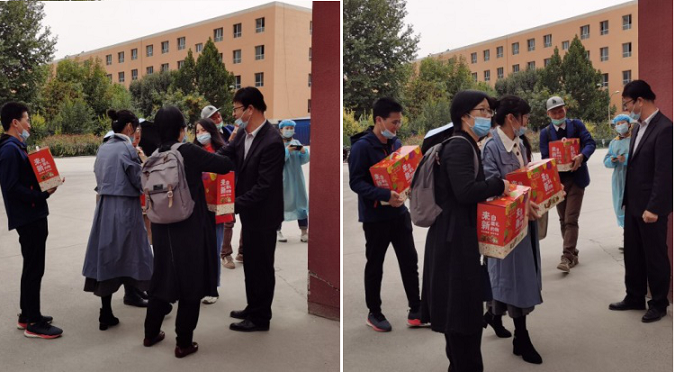 清风网讯(通讯员:吴长彪)国庆节、中秋节将至,为让援疆教师们度过一个愉快祥和的节日。9月27日,拜城县第一中学党支部书记吴强代表学校为6名援疆教师送上月饼和新疆特色水果等,向援疆教师致以节日的问候和祝福,祝福大家身体健康,双节快乐,希望大家凝心聚力,共同为拜城一中教育发展增光添彩!