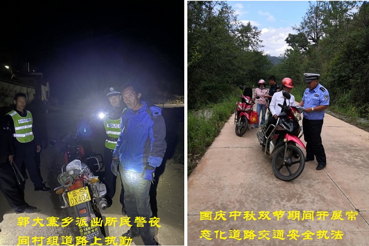 据了解,2020年10月1日全天郭大寨乡派出所出动警力10人次,警用车3辆次,农村地区道路交通安全一盔一带宣传368人次,查验过往车辆共368辆次,共查处各类交通违法2起,其中摩托车无证驾驶1起,未佩戴安全头盔 1起,农交安电动车录入12辆,电动车车主录入12人次,KTV核查消费人员89人次,烧烤店核查人员32人次,宾馆、酒店入住人员核查23人次。