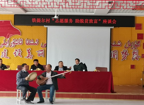 在座谈会上,村干部邀请村里的老党员和老干部,让他们谈谈村子里这些年来的变化。古丽先木老党员笑的合不拢嘴的说:“这些年党和政策对我们的生产生活特别的关心和照顾,现在家乡的变化越来越大,我要把党的声音传递下去。”
