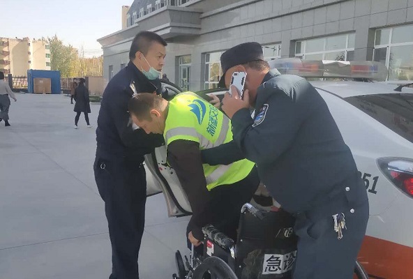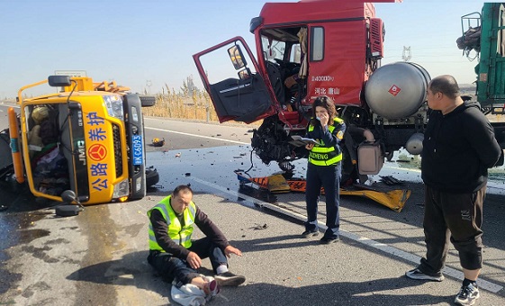 清风网讯(温宿执法大队:刘军)10月22日13时28分,执法人员在G3012线K886处阿喀方向巡道时,对面车道一辆红色半挂车突然追尾一辆正常行驶的公路施工车辆,公路施工车辆被撞翻,导致车上人员受伤和交通中断。执法人员在K888处立交调头赶到事故现场,到达事故现场后,发现公路施工车辆的驾驶员坐在路面上,腿部受伤无法行走;交通事故造成交通中断,救护车辆无法及时赶到事故现场。为了让伤员及早得到救治,降低事故造成的伤害,执法人员立即用执法车辆绕道将驾驶员送到医院救治。到达医院后,执法人员积极协助医护人员将受伤驾驶员送到急诊科,并为受伤驾驶员办理住院手续和垫付了住院押金1000元,执法人员一直等到受伤驾驶员单位派来的工作人员到达急诊科后方才离开医院。