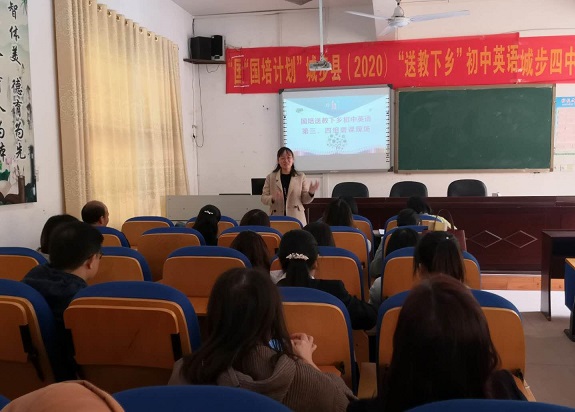 清风网讯(通讯员:刘海燕)10月21日,城步苗族自治县初中英语国培“送教下乡”第三组第二次研课磨课在城步四中如期进行。来自该县偏远乡镇的10多名初中英语教师参加了此次活动。县进修学校工会主席姚清国及“国培计划”培训教师亲临现场指导。