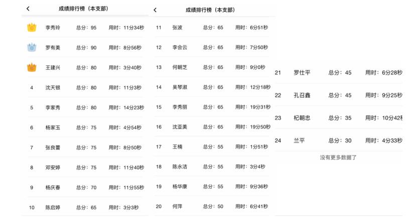 三是“以考促学”,检验学习成效。组织开展学习贯彻《中国共产党基层组织选举工作条例》在线学习、在线测试,全面考核党员干部学习《条例》的情况,提升学习的积极性和主动性,营造“比学赶超”的良好氛围。学习开展以来,本支部组织开展理论知识测试20余人次,通过考学,进一步加深了印象,提高了学习的质量和效果。