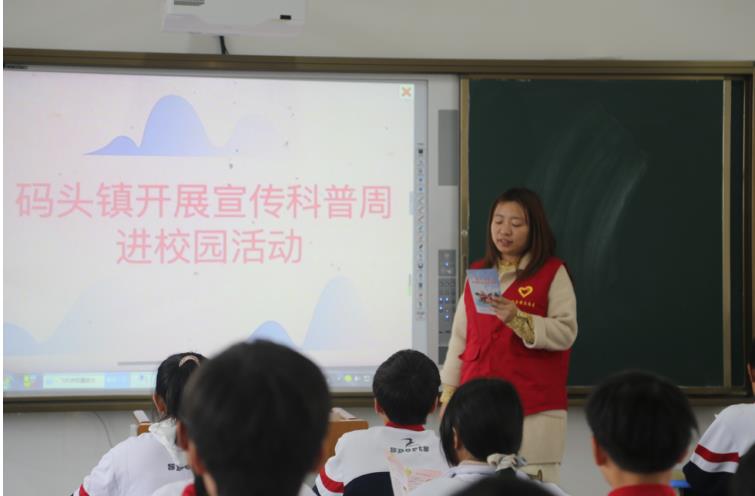 11月4日,码头镇关工委联合新时代文明实践所走进码头中学开展校园“科普宣传周”活动。现场,除为学生提供防疫与健身咨询、发放《保护环境,我们该做的50件事》《预防新冠肺炎防护知识问答》《疫情防控指引》《防汛、避险小知识及注意事项》《提高免疫力是健康的基石》《青少年科普》等宣传资料外,还展示出了新型冠状肺炎防控知识和中老年人科学养生体育健身知识图片展板。宣讲员为学生讲解如何保障未成年人人身安全、青少年上网的危害、制止校园暴力等青少年科普知识,并号召学生争做文明实践者、宣传者。该校一名学生表示,回家后要告诉自己的爷爷奶奶少吃隔夜菜,多喝水,房间多通风,自己也要改掉喝碳酸饮料的坏习惯。