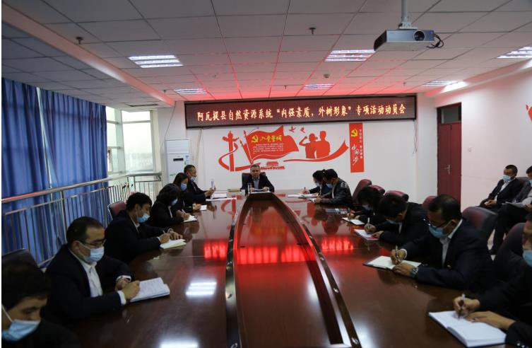 清风网讯(阿瓦提县自然资源局)为全面提高阿瓦提县自然资源系统干部职工综合素质,展示单位良好形象。2020年11月5日,阿瓦提县自然资源局召开“内强素质、外树形象”专项活动动员会,会议由局党组书记、局长纳买提江·玉苏甫主持并作动员讲话,党组副书记、副局长王福平宣读《关于成立阿瓦提县自然资源系统“内强素质、外树形象”专项活动领导小组的通知》和《阿瓦提县自然资源系统开展“内强素质、外树形象”专项活动实施方案》,县自然资源系统全体人员参加。