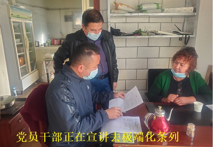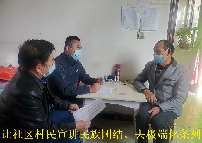 每到一处单位党员干部围绕加强民族团结,维护社会稳定,深入推进“去极端化”工作等内容,运用用通俗易懂的语言和群众喜闻了见的方式向社区居民开展了宣讲并讲清“新疆维吾尔自治区去极端化条列”、国家法律法规,极端思想渗透的危害性。