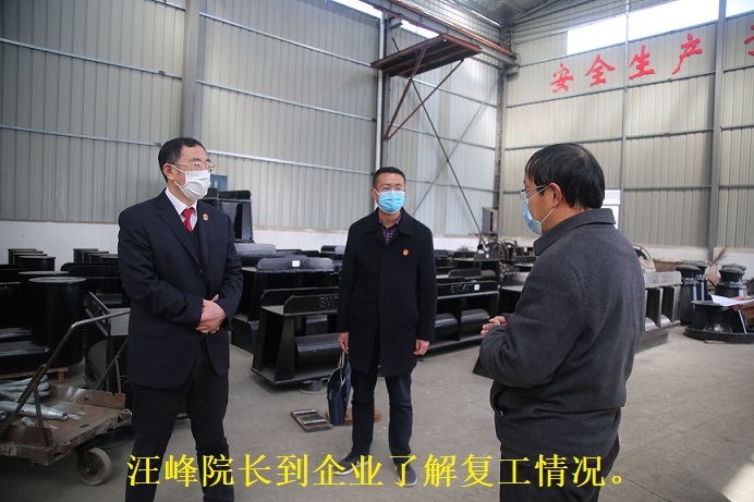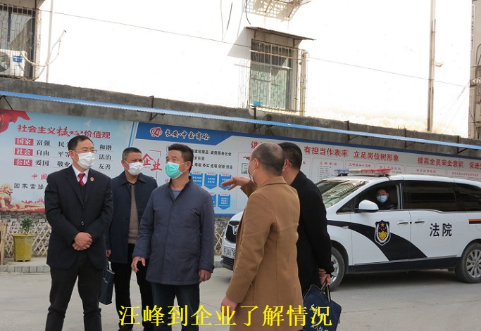 3月17日,当疫情防控即将解封时,汪峰院长就带领有关人员来到英山县世强工具有限公司,深入到车间一线,详细了解公司现状、疫情防控、复产复工等情况。汪峰院长对企业提出的要尽快办理起诉回收货款的案件高度重视,表示尽快协调解决。