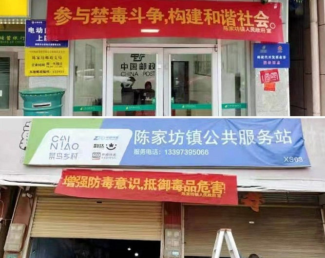 活动中,禁毒工作人员先后来到辖区中国邮政、顺丰、迅达、申通、圆通、京东等6家物流寄递业公司,全面了解寄递渠道的运行情况,在物流寄递场所醒目位置粘贴了警示标语,设立陈家坊镇禁毒举报电话。执法人员实地检查了辖区内快递经营网点和物流寄递经营企业的物品收发登记、视频监控、开箱验视等情况,未发现涉毒违法现象;在现场,工作人员还对经营人员开展禁毒知识宣传,讲解毒品预防和寄递物流方面禁毒的相关知识,并在每个物流寄递经营场所指派一名社区干部,要求每天通过明察或暗访的方式,督促从业人员彻底落实实名收寄件和开箱检视两个100%(100%收寄验视、100%实名收寄)到位,发现问题及时向镇禁毒办和派出所反馈。