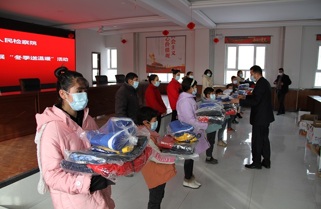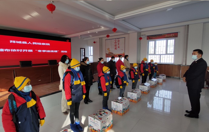 清风网讯(拜城县人民检察院:塔依尔·买买提)为弘扬“奉献、友爱、互助、进步”志愿服务精神,发挥检察干警在构建和谐社会的积极作用,拜城县人民检察院在察尔齐镇吾斯塘布依村开展了“冬季送温暖”活动,让困难家庭的孩子在这个冬天不再冷,感受到党和政府的温暖。