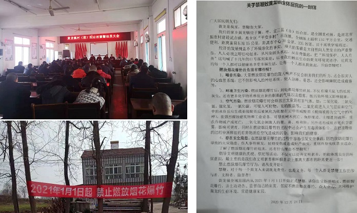 清风网讯(黄龙镇人民政府:杨涛 朱翠)12月24日,革命苏区襄阳黄龙镇召集全体机关干部、各村支部书记和镇直单位负责人近百人在镇三楼会议室召开了村(居)民自治全域禁鞭动员会。要求全镇自2021年1月1日起,全域禁鞭。要求各村进行广泛宣传,下发禁鞭管理办法,发放《关于禁鞭致黄龙镇全体居民的一封信》,宣传到家喻户晓,并逐户签定禁鞭协议,以此提高全镇居民大气污染环保防治意识,营造蓝天白云和绿水青山的生活环境。