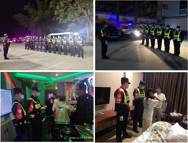 清风网讯(大新边境管理大队:袁金锋)为确保辖区社会治安持续稳定,切实做好社会面治安管控工作,及时消除社会面安全隐患,确保辖区群众欢乐愉快度过元旦佳节,大新边境管理大队于2020年12月31日19时开展集中清查行动。
