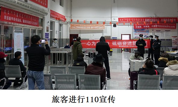 清风网讯(通讯员:贾竣皓)在首届“中国人民警察节”即将来临之际,1月8日,锡林浩特铁路公安处阿巴嘎旗车站派出所民警深入车站候车室组织开展 “一心为民110,砥砺奋进新征程”为主题的宣传活动。