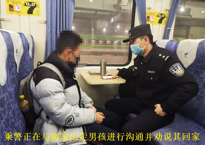 1月11日,Z284次列车运行至张家口至北京站区间时列车乘警长接到通报:一名未成年离家出走男孩可能正在Z284次列车上。请求协助查找。接警后,乘警长郭英杰立即开展查找工作,终于在16号车厢找到离家出走男孩小威。面对乘警的询问,小威的情绪十分激动,多次打断乘警的劝阻,坚持到南京下车。经过郭警长耐心的开导和劝说,小威终于同意在天津西站下车。