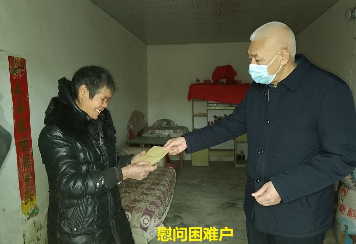 在明湾村四组冯永安家,王守东局长详细询问了冯永安家庭情况。冯永安现有人口4人,长子半月前因意外死亡,其媳妇18年前离婚,孙子在武汉上大学,次子未婚在外务工,耕地面积3亩被汉十高铁征用,家庭生活靠次子在外务工。对此,王守东局长说:“春节来临,慰问解困,当务之急”。他和局党组成员一起走访了财局包保的三个村9户困难户,了解他们所思所想所需,对当前遇到的困能和问题进行了详细了解,要求驻村工作队及时与困难群众沟通,能解决的及时解决,不能解决的向局反映,争取让这些困难群众过个健康幸福年。同时,王守东局长一行还为每个困难家庭送上新年大礼包,让他们在这个寒意刺骨的日子,感受到党和政府的关怀。王门村四组困难户姜义芝接过王守东局长送上的“新年大礼包”时,连声感谢,并表示在驻村工作队和村两委的帮助下,积极发展好自己的产业,不返贫,不给党和国家拖“后腿”。