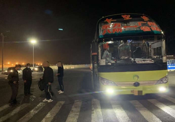 海安南站派出所执勤民警接报后,经获取该二人具体信息,立即组织6名警力,赶到北港码头出站口,但是,此时粤海铁3号的乘客,几乎已经全部下船,从出站口离开了。“来晚了!”,这是执勤民警到达出站口说的第一句话,迟疑片刻,“找车!”,民警下达指令后,立即带着4名队员前往大巴车上客点,并安排两名队员在北港出站口继续对出站的剩余旅客进行核验。