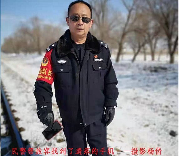 接警后,包头北车站派出所明安警务区民警高贵明立即出发徒步前往寻找。当天包头地区刚下过雪,张女士的手机还戴着白色的手机壳,雪地里极难发现。55岁的高贵明一步一个脚印,步行一个半小时,终于找到了钢轨旁掉落的手机,并且还可以正常开机使用。当天下午,民警将手机交还到张女士手中。