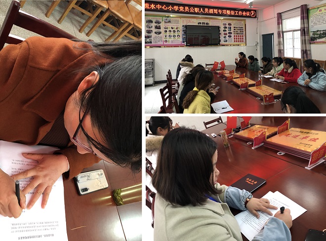 长达四十多分钟的专题会议在每一位教师签订《杜绝酒驾承诺书》中结束!
