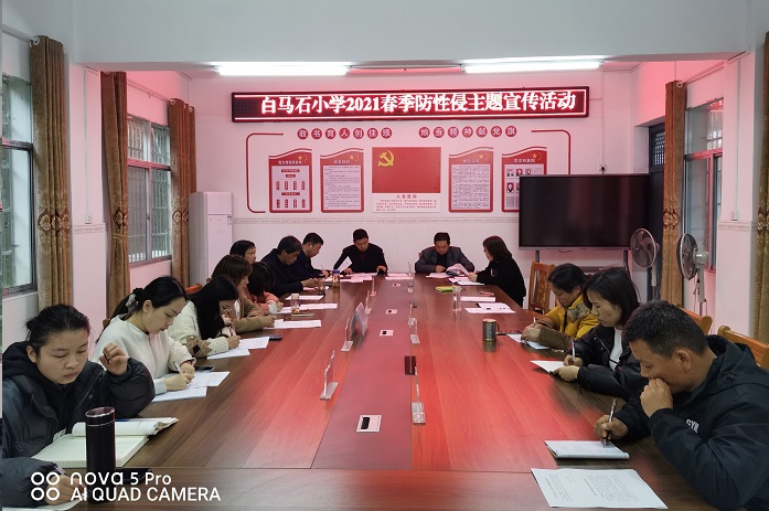 清风网讯(通讯员 段祯祯)“坚决不单独私自与学生封闭式会面、坚决不在无监护人在场情形下单独私自家访”。3月11日晚,英山县杨柳湾镇白马石小学开展“防性侵”安全教育宣传活动。政教主任徐柳再次强调各位教师认真学习九部委《强制报告制度》,明确各自职责,切实履行制度并全面自查。更加全面筑牢校园安全“防火墙”,认真贯彻落实《未成年人保护法》及相关法律法规。