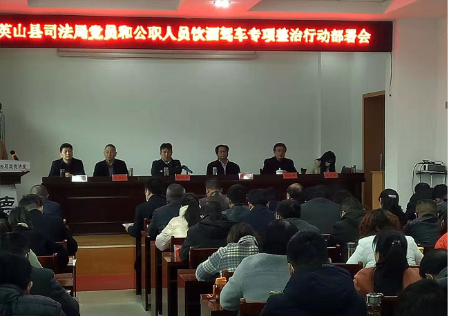 清风网讯( 英山县司法局:杨启炜)2021年3月11日,英山县司法局召开党员和公职人员饮酒驾车专项整治行动部署会,全系统80余名干部职工、法律服务工作者、律师参加会议。