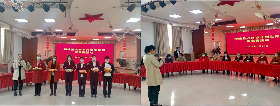 清风网讯通讯员:古丽拜克热木·依米提)2021年3月16日大桥乡计划生育办公室组织开展了计划生育知识竞赛,“产后多久上环,怎样选择避孕措施,查环,查孕几个月查一次”,“符合领取计划生育光荣证的条件是什么?”“知识竞赛现场手们抢答题如流,观众惊叹连连