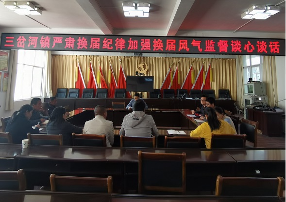 严肃纪律,确保换届风清气正。三岔河镇把纪律和规矩挺在前面,以“零容忍”的态度正风肃纪,及时开展谈心谈话,提醒、告诫、督促有关干部严格遵守换届纪律,带头贯彻落实“十严禁”,并对流转干部做好思想工作,严肃换届纪律加强换届风气监督,营造风清气正的换届环境。