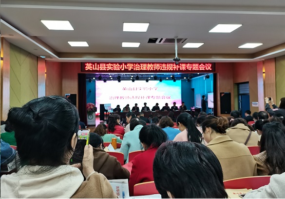 会上,传达了黄冈市教育局《关于在全市中小学校开展在职教师从事有偿补课专项治理的通知》,英山县教育局《关于进一步重申严禁中小学在职教师有偿补课相关事项的通知》,组织学习了《英山县实验小学严禁在职教师有偿补课专项整治方案》,进一步明确了关于禁止教师有偿家教的规定要求,强调师德师风建设的重要性,要求全体教师加强师德学习,树立廉洁从教的职业操守,积极传播教育正能量。