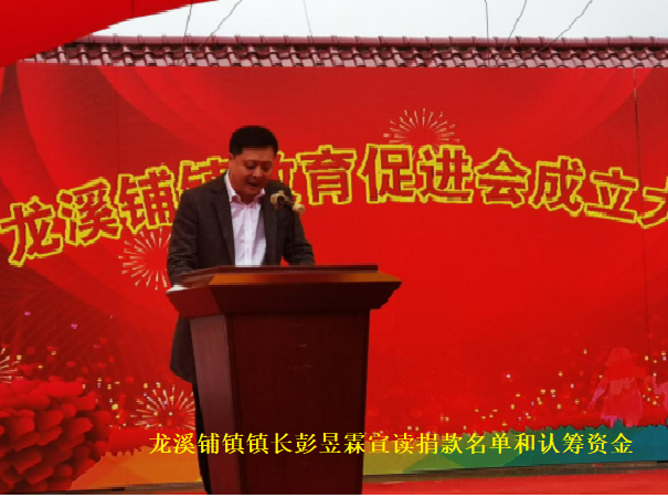 龙溪铺镇镇长彭昱霖宣读捐款名单和认筹资金,自2019年6月22日,龙溪铺镇教育促进会筹备动员大会至2021年4月5日为止,龙溪铺镇教育促进会认筹资金650万元。