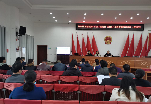 清风网讯(新邵县迎光乡人民政府:江涛 王小中)为更好的方便群众、服务群众,4月20日,新邵县“智慧政务”平台下延到村(社区)业务专题培训会议在迎光乡召开,迎光乡政务服务中心全体工作人员,迎光乡所辖各村政务服务工作人员参加会议,新邵县行政审批服务局领导黄天玲、曾凡超和孙伟林等到会指导。