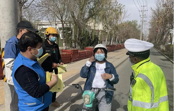 清风网讯(沙雅县公安局交通管理大队:司马义买合木提)为进一步推进“一盔一带”安全守护行动,推动快递行业佩戴安全头盔的行业示范引领作用,从而实现“减量控大”工作目标。4月20日,沙雅县公安局交通管理大队联合辖区外卖、快递行业开展警企联合劝导活动。