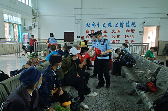 民警们在法制安全宣传中,重点地提醒旅客保管好自己的“钱袋子”,谨防被盗被骗,不要点击陌生的链接,不要向陌生人透露自己的取款密码,并要求沿线群众不要破坏、攀爬、钻越铁路防护栅栏、防护围墙;严禁拆盗、损毁或移动铁路设施、设备、安全标志。并告知,这些都是违法行为。