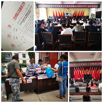 二是召开征兵工作四个会议,分解细化工作任务。定时召开党委会、全镇征兵工作安排部署会、征兵工作业务骨干培训会、适龄大学生应征报名宣传会等四个会议,专题研究征兵工作,分析存在困难,总结工作经验,分解细化当前工作任务,由各村挂钩领导负责督促落实,做到征兵宣传逢会必提,确保征兵工作与其他中心工作同安排、同部署、同落实。