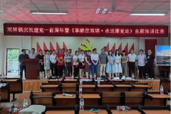 清风网讯(通讯员:刘艳 欧志成) 中国共产党的一百年是栉风沐雨,披荆斩棘的一百年,是上下求索励精图治的一百年。党的一百年是一幅波澜壮阔的历史画卷,也是一部催人奋进的长歌史诗。6月29日上午,武冈市双牌镇干部职工相聚一堂,共同见证“奉献在双牌,永远跟党走”演讲比赛,共同纪念伟大的中国共产党诞辰100周年,集体重温党的历史,纪念党的生日。