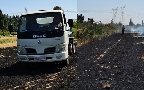 接警后,阿依库勒镇消防救援队紧急协调1辆洒水车火速赶赴现场,到达现场后火情侦察发现,风力为3-5级,整个麦田弥漫在一片浓烟之中,大火借助风势迅速吞噬着整片麦田,如不及时扑灭,危及到邻近的民房,后果不堪设想。灭火指挥员果断部署战斗力量:指挥消防车立即进行洒水作业,水枪对火势进行控制,组织群众力量对居民点附近火势进行控制,防止火势蔓延至居民点民房造成更大危险。