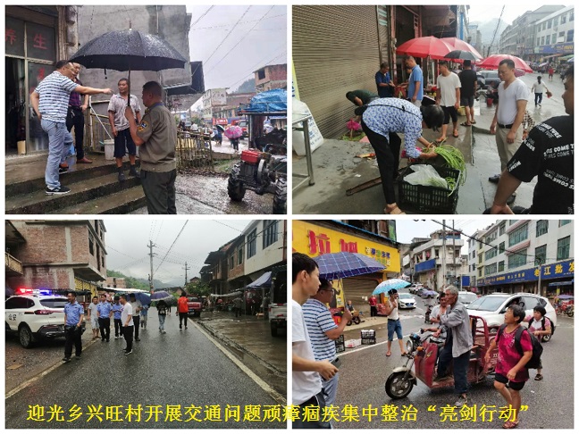 根据《新邵县交通问题顽瘴痼疾集中整治“亮剑行动”工作方案》及《新邵县开展“亮剑行动•万人集中执法活动周”工作方案》,迎光乡自6月30日起,开展为期两个月的道路交通安全“亮剑”行动,通过亮剑行动,使全乡交通安全责任落实明显改观,管控效能明显提升,安全意识明显增强,通行秩序明显好转,实现降事故,保安全、保畅通的总体目标。