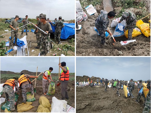 29日凌晨6时许,七团基干民兵抵达现场后,根据现场指挥,迅速投入抗洪抢险工作。他们不畏艰险、迎难而上,铲沙、装袋、搬运,靠人力挖土装袋运往垮塌处,展现七团基干民兵英勇奋斗的顽强作风,为人民群众筑牢安全堤坝和生命防线。