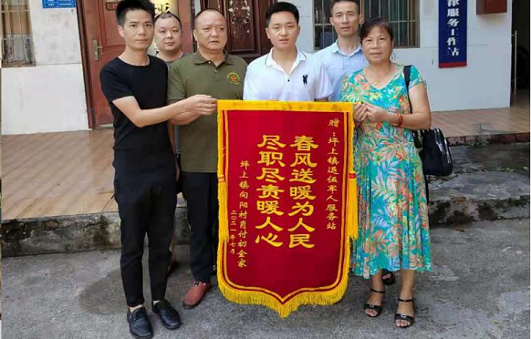 清风网讯(特约记者 钟鹏 通讯员 石林) 7月27日早上7时许,新邵县坪上镇向阳村参战退役军人肖付初的妻子邓财珍率小儿子和孙子双手捧着写有【春风送暖为人民、尽职尽责暖人心】的鲜艳锦旗早早地在该镇政府大门口等候,是专程来感谢镇党委政府和镇退役军人服务站帮助她家维护了正当合法权益的。