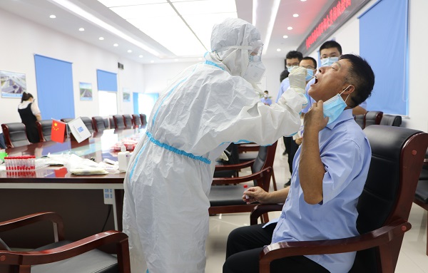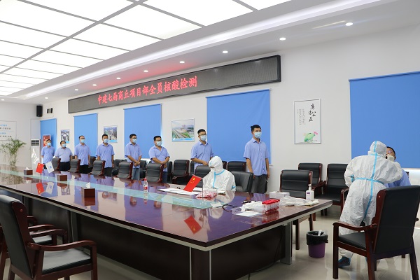 4日上午8时,各分部施工与管理人员在安排好现场各项工作的基础上,先后按时到达项目部。所有待检人员都能严格遵守驻地疫情防控的各项要求,做到科学佩戴口罩,排队间隔距离保持一米以上,依次有序接受采样检测。