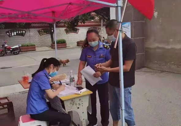 天刚蒙蒙亮,两抹靓丽的“城管蓝”就出现在南湖小区值守点,她们严格查看进入社区市民的健康码和行程码,详细做好进出登记,耐心解释“四个一”的政策,柔声劝导附近的居民不要聚集,保持安全距离。10号通告刚刚出台,南湖小区人多车多,她们忙得甚至水都顾不上喝一口,但坚决履行防控职责,做到应查尽查。这就是城管执法局周小芳、张丹忙碌和充实的一天,从8月2日开始,她们便周而复始、重复繁琐的这样工作着。