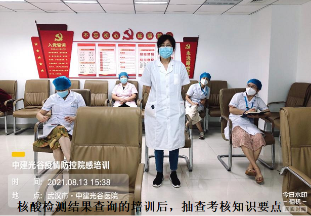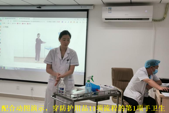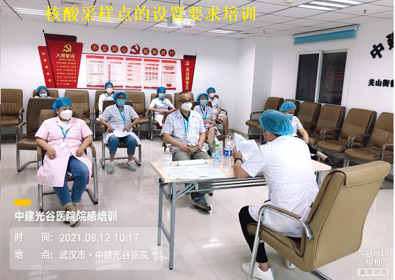 三是见缝插针地持续组织专项培训。利用VCR、动图、PPT、现场示范、WORD等多种形式,相继组织了德尔塔病毒的症状和特点培训、穿脱防护用品全流程培训、核酸样本采集的操作培训、核酸检测结果查询的培训、新冠肺炎非定点医院院感培训、核酸采样点的院感防控与设置要求、医废转运培训、通过扫描微信的健康码进行“人员采样”信息自动登录培训。