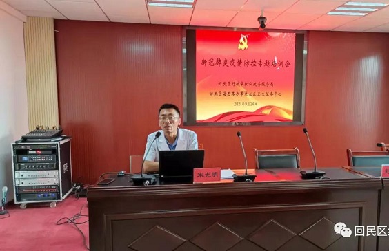 此次活动邀请内蒙古中医院宋光明教授,重点对进出政务大厅人员严格落实扫码、测温、登记管控方面、窗口工作人员自我防护方面、大厅全面消杀制度、防疫物资储备、隔离场所设置、人员健康管理、疫苗接种以及遇到办事群众扫码后发现健康码为黄码、红码或体温异常等突发事件的处理措施等新冠疫情防控知识进行了全面的讲解。同时,对物业、后勤食堂等相关作业人员环境消杀工作进行现场教学,对单位职工食堂就餐时间、人数、食材把关和餐厅管理等方面进行规范指导。