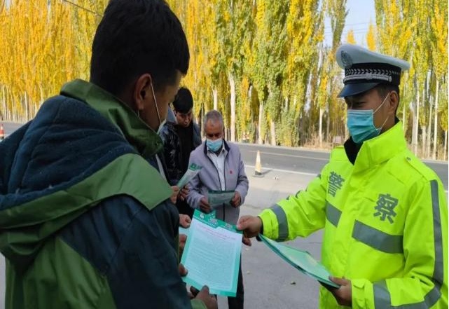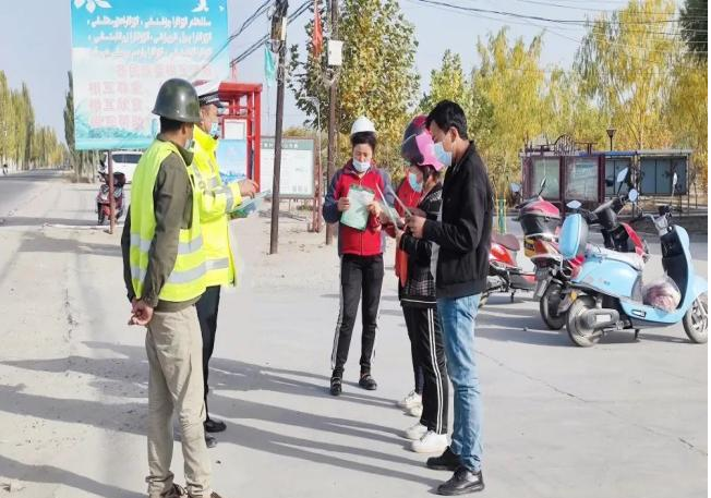 清风网讯(沙雅县公安局交通管理大队:司马义买合木提)为进一步增强摩托车和电动自行车骑乘人员佩戴安全头盔、汽车驾乘人员使用安全带的意识,促使其更加自觉佩戴安全头盔、使用安全带,全力做好道路交通事故预防工作,10月24日,沙雅县公安局交通管理大队组织民警深入辖区琼古勒巴格村、色日克苏盖提村,开展“一盔一带”主题宣传活动。