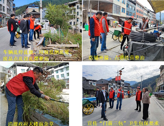 活动期间,我乡共组织20余人次参与创建活动,清理政府办公楼前杂草2处,清理宿舍楼卫生2栋,清理乱堆乱放杂物2处,整治店铺外溢、占道经营2处。“门前三包”卫生包保宣传50余人次,并整治乱停乱放车辆、乱张贴广告、乱拉挂横幅多处,宣传文明创建有关要求60余人次。