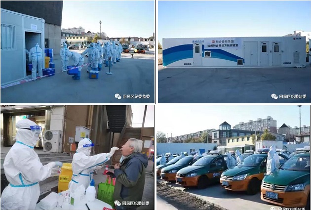 10月24日回民区启动了第一轮全员核酸检测,卫健委成立了采样人员调度组、核酸样本运输组、统计数据信息保障组、核算采样信息系统保障组、巡查督导组、重点人员转运组、信息宣传报道组、走访慰问组、后勤保障组共9个工作组,开展全员核酸检测前期准备和医护人员分配等各项工作,确保无缝对接,并协同攸攸板镇、各办事处启用173个采样点,向各采样点派出医护人员共计1432人,组成了80人62辆车的核酸采集样本转运队伍,24小时无休进行转运,保证采集到的样本在规定时间内转运到检测实验室。为保证圆满完成此次核酸采样工作,内蒙古医科大学附属医院向我区增援医护人员700名、内蒙古自治区人民医院增援医护人员240名、包头市增援医护人员300名,为我区的核酸检测工作提速助力。