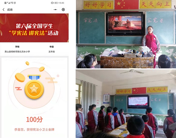 根据学生身心发展特点,学校德育处分学段、分批次组织学生参加了宪法知识网络学习和“宪法小卫士”活动。学生利用课余时间与父母一起进行学习,此次全校参与活动率高达95%。