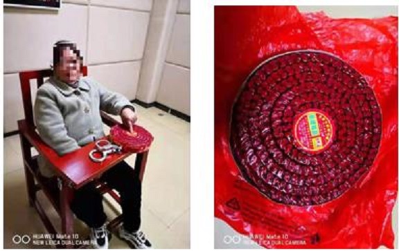 担心怕被火车站的工作人员识破,62岁的彭某就在家里将这1000响的鞭炮用五六层纸包裹住,然后放在一个橘红色的布袋子内提着,装着没事式地进怀化车站的候车室,准备乘坐7275次列车回新晃老家给母亲祝寿。
