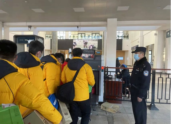 二是针对疫情防控的全面统筹、部署、应急措施落实等工作要求,加强与铁路、地方防疫部门沟通、协作,积极配合铁路部门、防疫部门开展疫情防控工作。所领导紧盯一线,靠前指挥,全体民警全力配合车站客运部门、防疫部门严格落实车站进出站关口卡控,做好全体进出站人员的分流、测温、扫码等期间的防疫管控、人员卡控和安全宣传等工作。