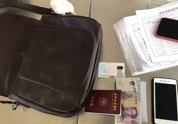 接到班姓同学的求助后,正在候车室执勤的怀化站派出所民警杨慧问了这名女大学生的行程后,遂去往安检机旁查找,果然在安检机传送带边上的一个角落里看到一个小包,经查看包里面的学生证、身份证,就是班姓同学的。民警将这个小包当即就还给了班姓同学。