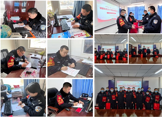 会上,所长马啸首先传达了公安处视频会议精神和春运安保方案,要求全体民警、辅警提高责任意识,明确目标任务,以持续深入推进“平安站车路、金盾护你行”活动为抓手,坚持各项工作标准不降、力度不减。激励全体人员以最强信念筑牢忠诚警魂、以最高标准履行岗位职责、以最严执法彰显公平正义、以最佳状态展现延铁公安形象,全力投入2022年春运安保工作中。随后,所支部结合辅警队伍全年工作表现评选出11名优秀辅警并予以表彰,并对2021年辅警队伍全年工作做出总结,要求全体辅警再接再厉、戒骄戒躁,坚守本职工作,打好春运安保工作首仗。最后,为进一步强化春运安保各项措施落实,积极响应公安处党委号召,规范自身执法执纪行为,榆林站派出所全体民警集中签订“枪、车、酒、赌、毒、网、密”等各类责任书80余份,并撰写《2022春运安保决心书》。