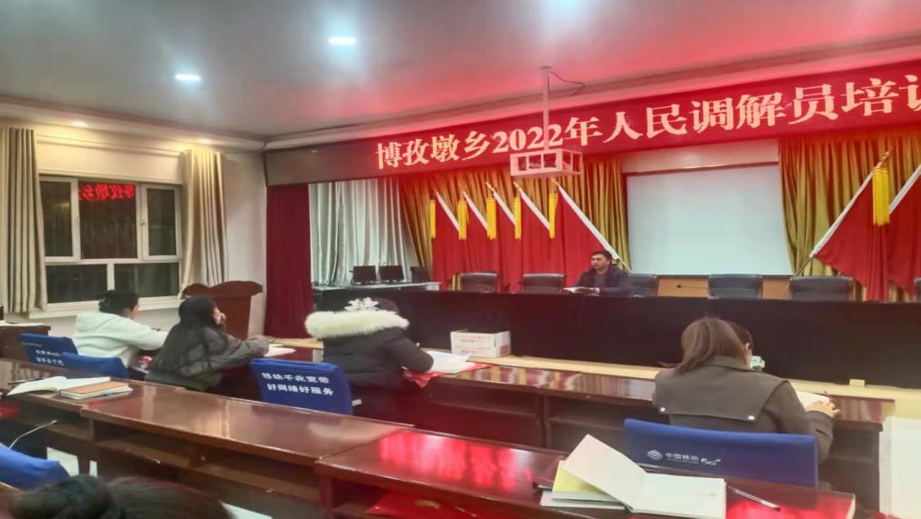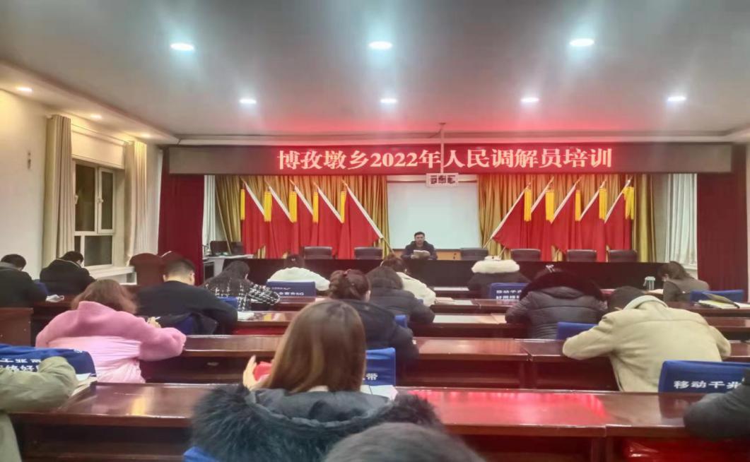 进一步提高乡级人民调解员队伍的素质,充分发挥人民调解工作在化解矛盾纠纷,维护社会稳定中的基础作用,进一步提高专职人民调解员政治素质和业务能力,提升人民调解工作规范化,专业化水,法治化水平,1月24日下午,博孜墩乡司法所在乡政府会议室举办人民调解员业务工作及化解矛盾纠纷培训班。